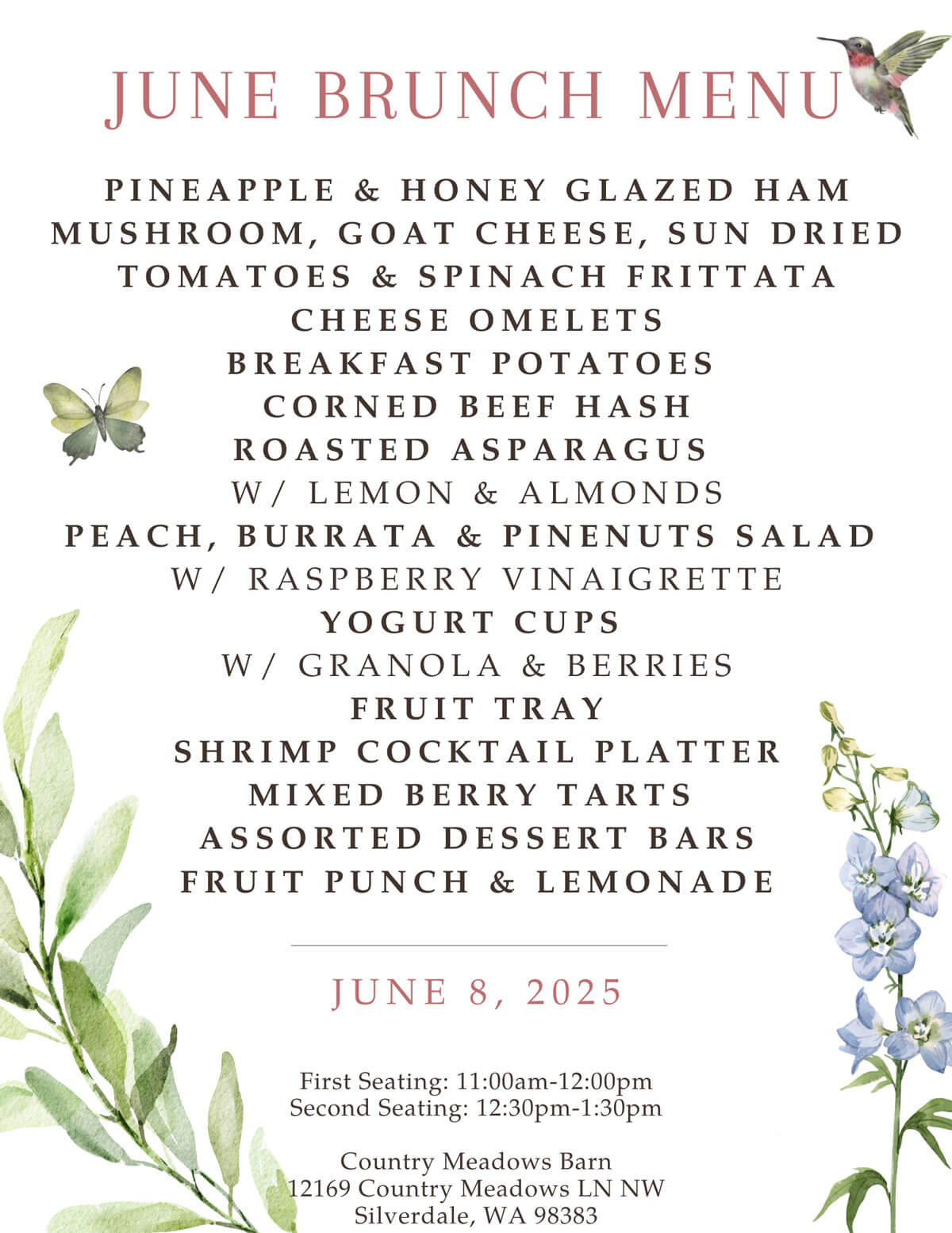 Enjoy a mouthwatering spread featuring pineapple & honey-glazed ham, cheesy omelets, peach burrata salad with pine nuts, shrimp cocktail, and more. Don’t miss this chance to savor great food and company at the Red Barn Café!